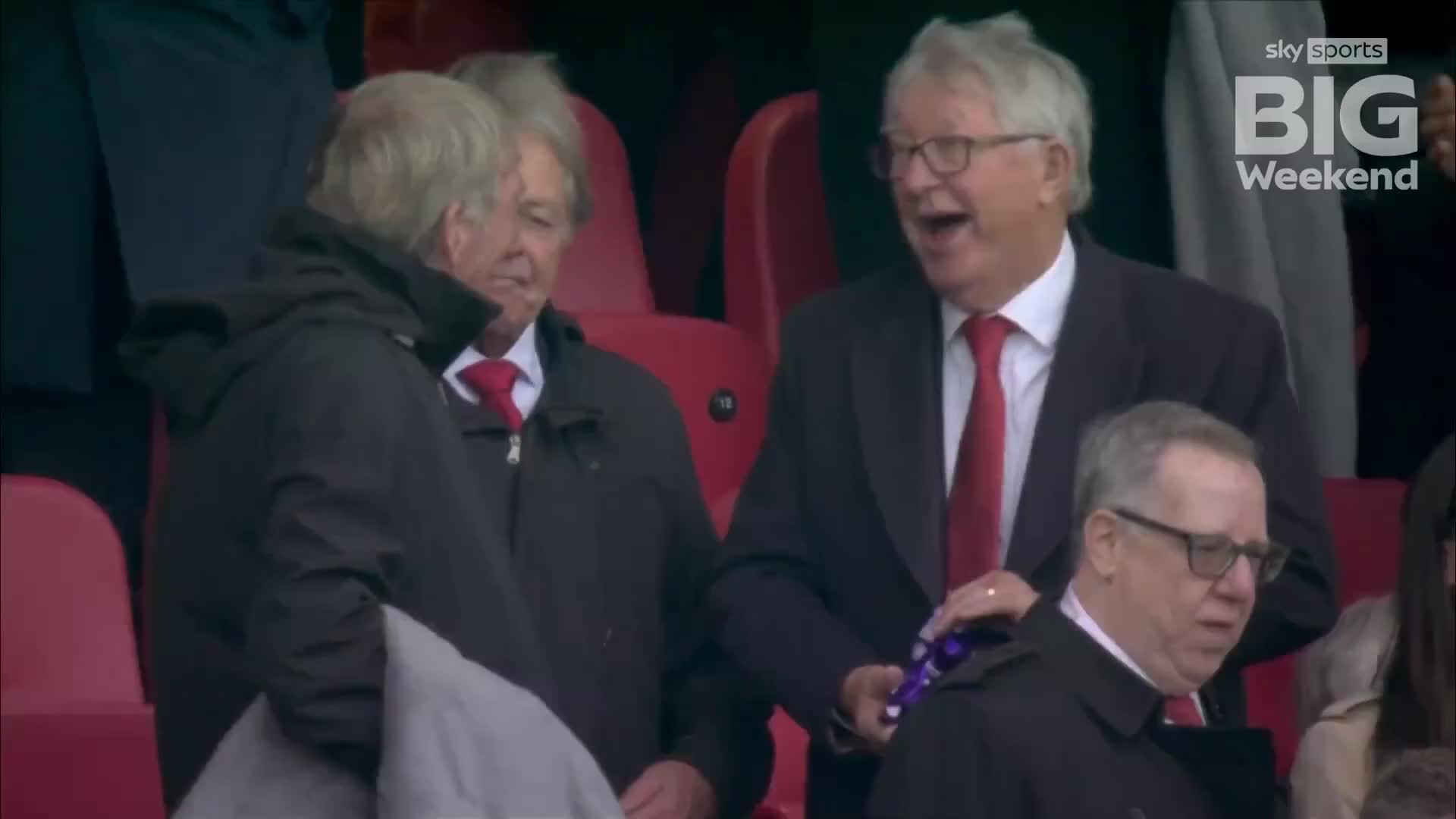 10月25日讯 双红会中场球员休息时段,转播镜头拍到弗格森给达格利什分享巧克力的画面。