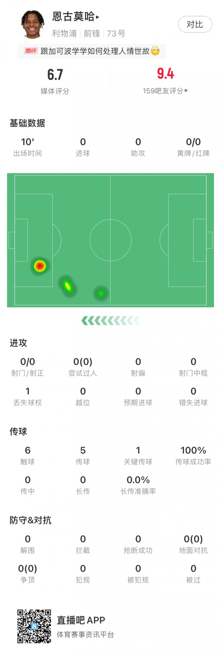 - 这不给杆位?17岁恩古莫哈上场仅10分钟,多次在对方危险区域 内造险