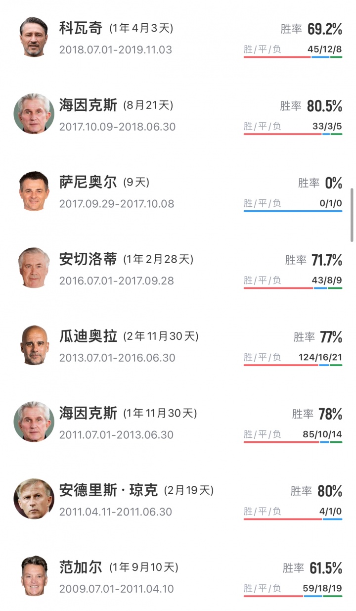 拜仁自范加尔以来的历任主帅: