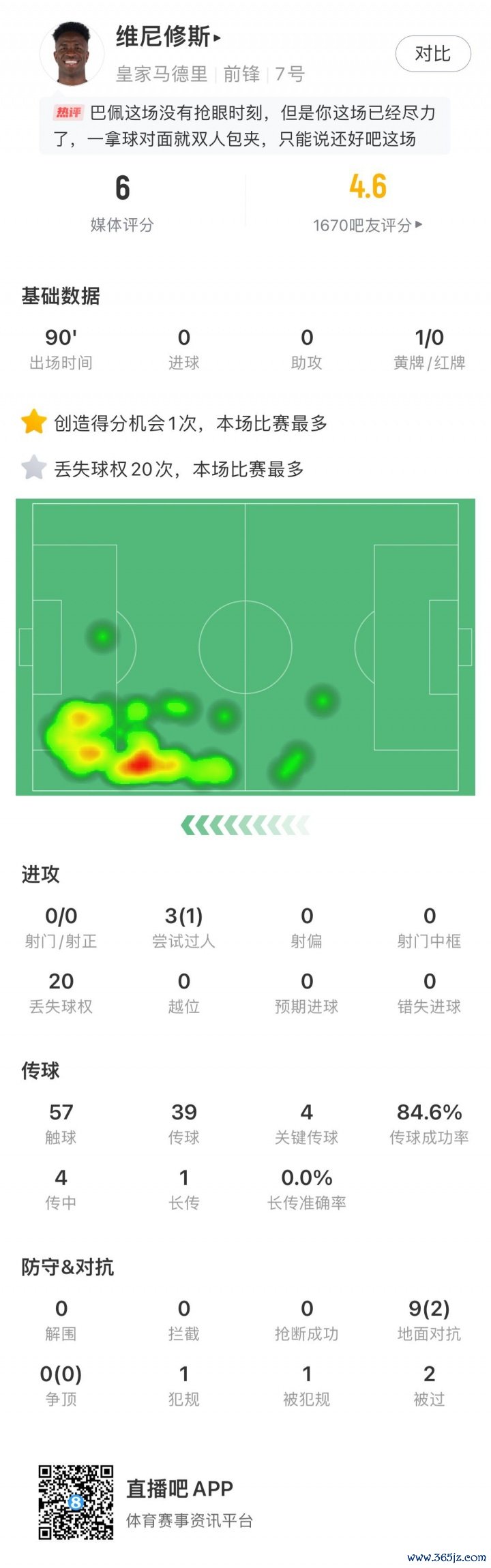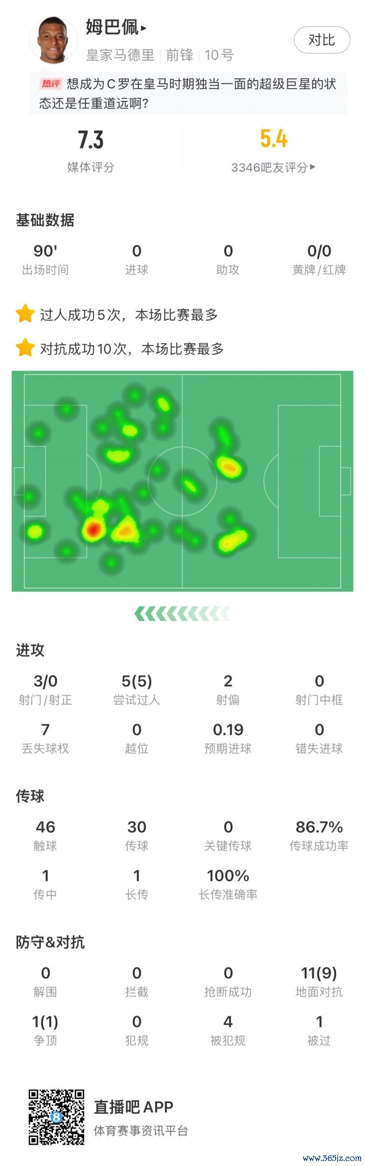 3.3亿双星0射正!姆巴佩2次射偏0关键传送球 维尼修斯0射9对峙 2成功