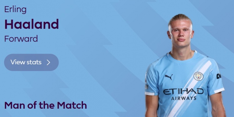 - 2射1传,英超官方:哈兰德当选曼城5-1伯恩利全场最佳球员