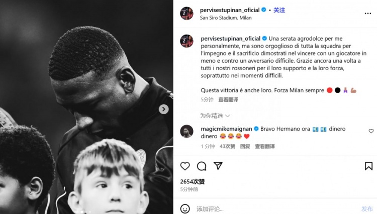 9月29日讯 米兰在本轮意甲2-1击败那不勒斯,在赛事 中染红的埃斯图皮尼安通过社交媒体进行了道歉。