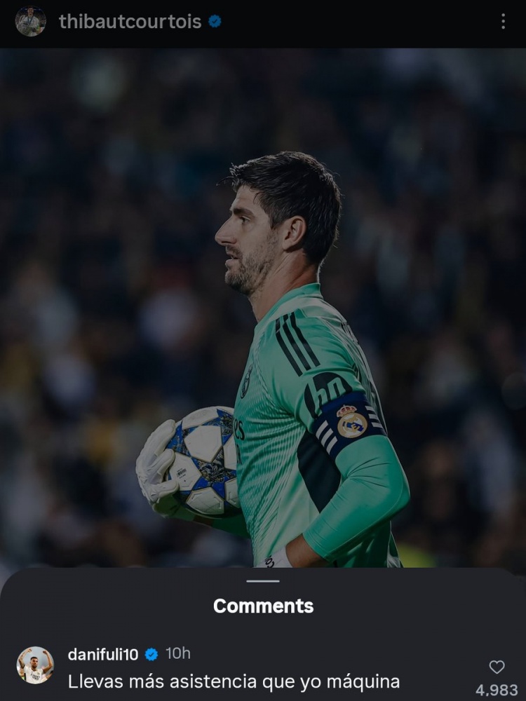 塞巴略斯打趣库尔图瓦社媒:你助功 比我多