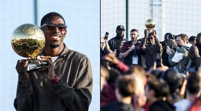法国足协晒照bet365手机app,欧洲杯直播吧登贝莱回到成长之地埃夫勒,向家乡人民展示了他的金球奖。