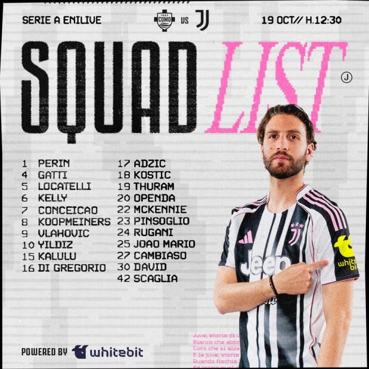 - 尤文客战科莫大名单:弗拉霍维奇领衔锋线,伊尔迪兹戴维在列