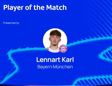 先拔头筹,官方:17岁小将卡尔当选拜仁4-0布鲁日全场最佳