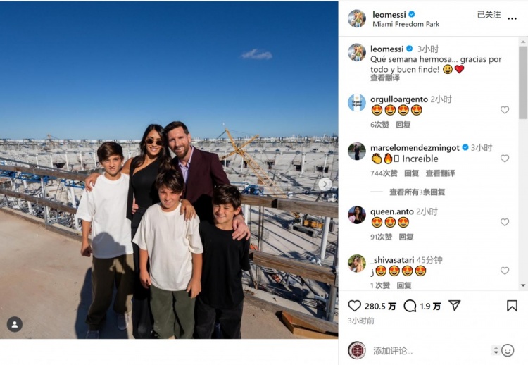 梅西社媒晒出续约和赛事 的照片,配文:“多么美好的一周啊……感谢一切,周末愉快!”
