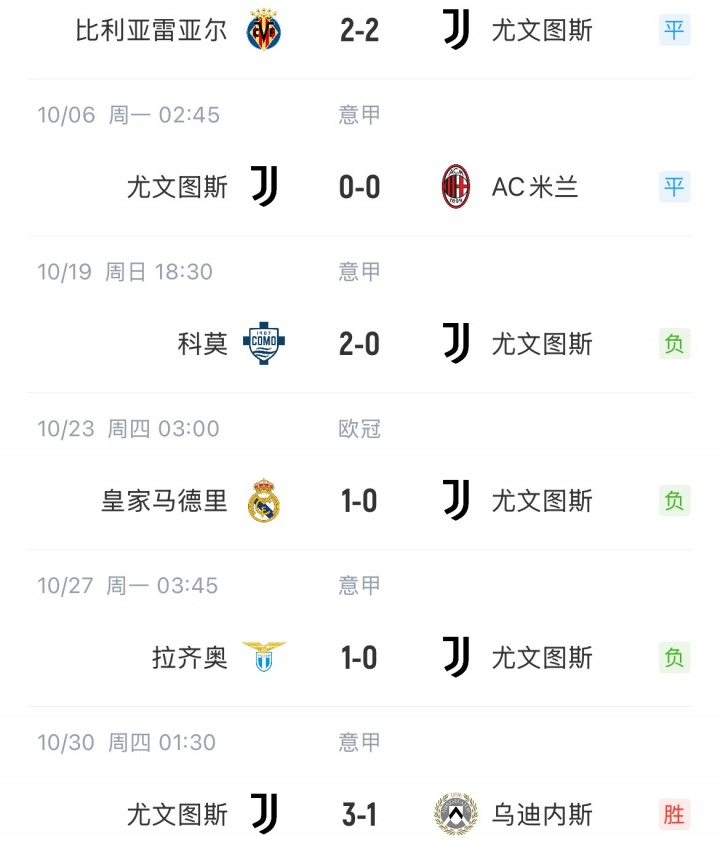 10月30日讯 意甲第9轮,尤文3-1战胜乌迪内斯,结束各赛事8场不胜。