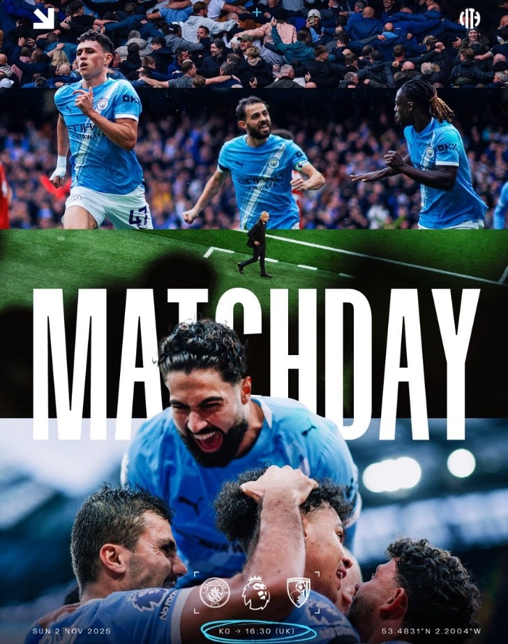 - 曼城官推晒海报预热本轮对阵伯恩茅斯:伊蒂哈德在等待!