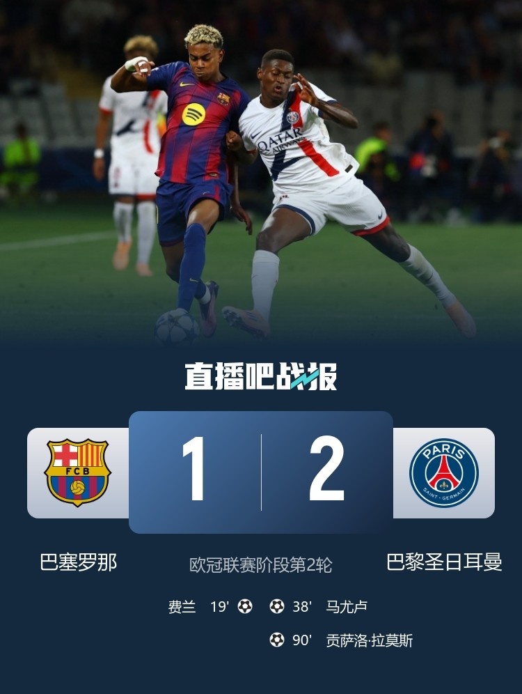 10月2日讯 欧冠职业联赛 第2轮,巴萨主场作战 1-2遭巴黎致胜球 。