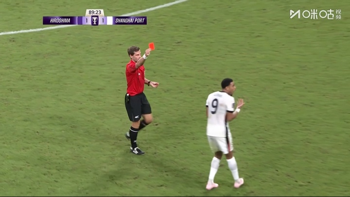 亚冠精英职业联赛 东亚区第2轮,广岛三箭vs上海海港第90分钟,海港前场球员古斯塔沃拼抢中违例 ,主裁判 果断直红将其罚下,VAR核实后维持了原判。